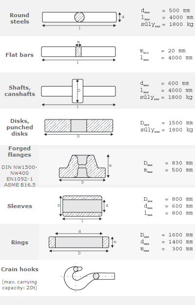 The products' surface can be scaly (after forging and heat treatment) or descaled dy sandblasting